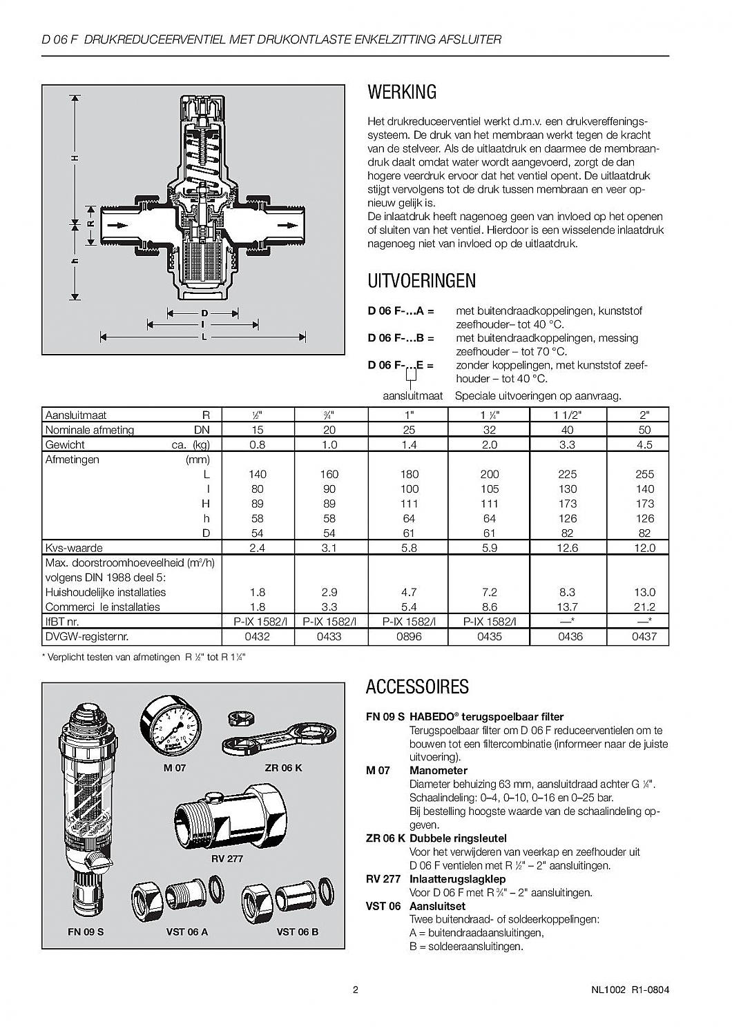 | Nom. diameter aansluiting 1 | DN 15 |