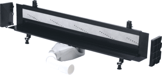 Het basiselement wordt rechtstreeks in de wand ge?ntegreerd. De afvoer is ontworpen om water effici?nt af te voeren zonder plasvorming. Dankzij de traploze inkorting kun je de lengte precies aanpassen aan de breedte van de douchewand. Het systeem is bestand tegen zeepresten en schoonmaakmiddelen, en de onderdelen zijn eenvoudig bereikbaar voor reiniging en onderhoud.